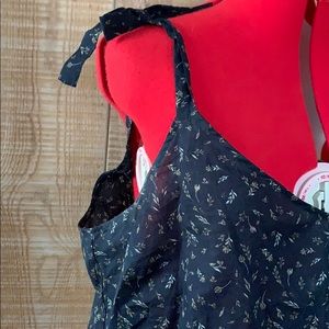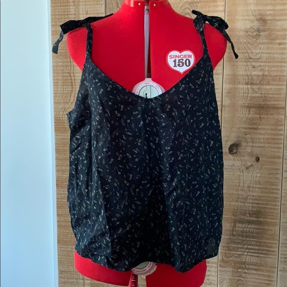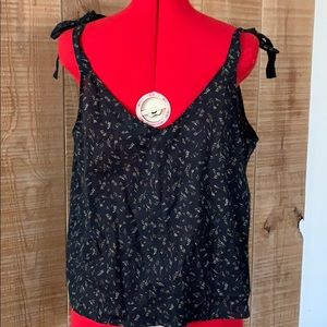 Sleeveless blouse in floral cotton with ties at shoulders. Size XL. Never worn.