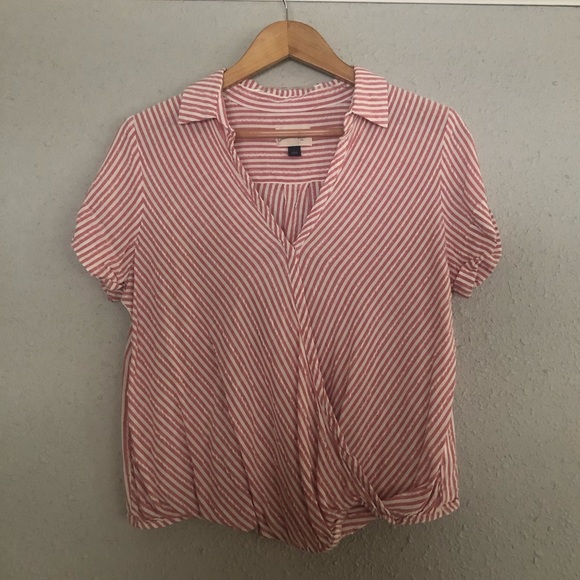 Universal Thread crossover short sleeve shirt in pink and white stripe.