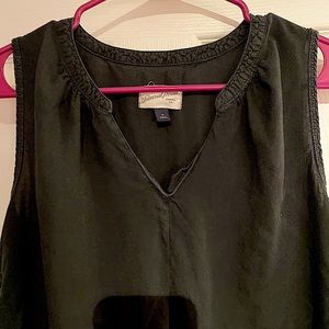 This black shirt has very comfortable material and has a little V-Neck. It’s great for under a cardigan for cold weather or wear it by itself in warm weather.