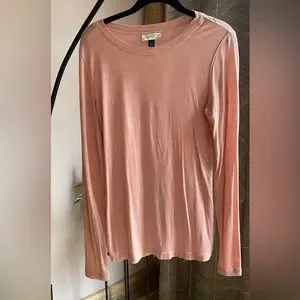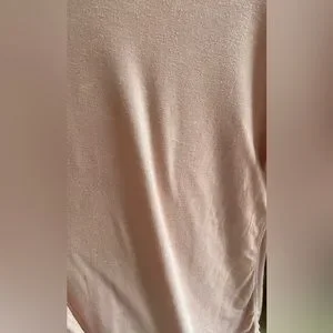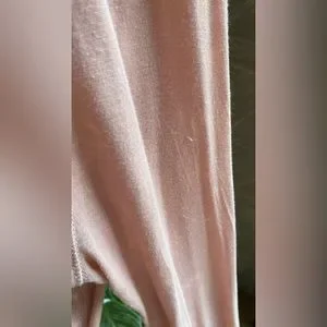 Oversized, somewhat sheer, stretchy, very comfy. A few small pulls