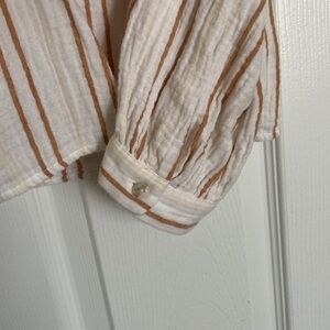 Boho organic, 100% cotton, light and flows comfortably. Great detailing including pleated back.
