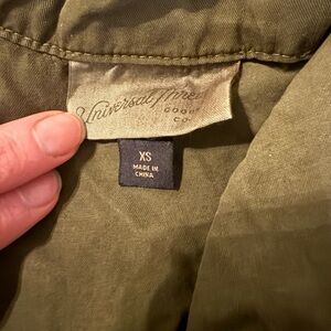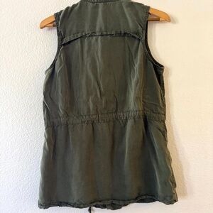 Military style vest with drawstring and pockets. Army green