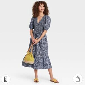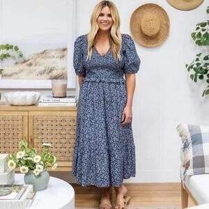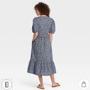 Universal Thread V-Neck Cottage Core Blue Floral Prairie Dress Short Sleeve XS