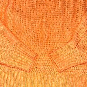 Bright orange V-neck sweater. Soft knit fabric. Ideal for layering.