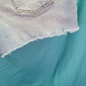 Stylish denim shorts featuring a high-waist design and button fly closure. Ideal for casual wear with a vintage-inspired look.