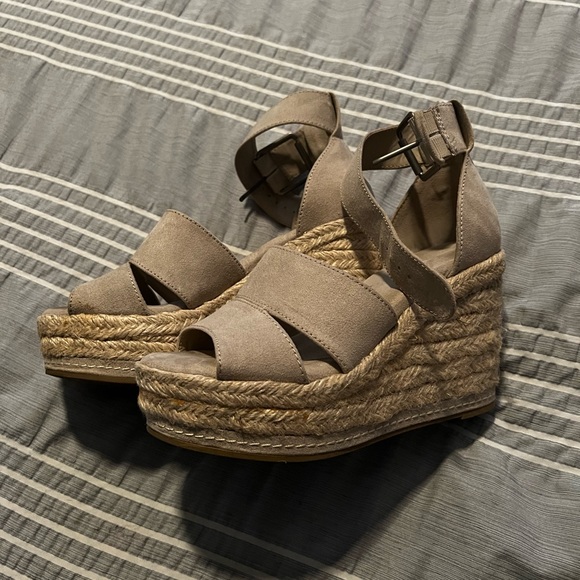 Barely worn wedge with slight pulling in the back which can be easily removed - very comfy