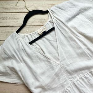 Worn for a photo shoot for 1 hour, Like new. Embrace effortless style with this Universal Thread dress featuring a V-neckline and flutter sleeves. The pure white color and relaxed fit make it perfect for a casual outing!