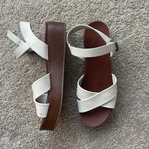 Universal Thread White Platform Sandals, Size 9, slight scuff and mark, like new, see pictures for details