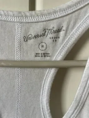 Soft ribbed knit racerback tank. Lightweight and breathable for everyday wear. Simple scoop neckline for easy layering. Clean white finish pairs with any outfit.