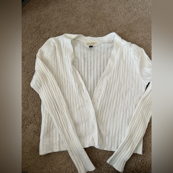 Universal Thread White Ribbed V-Neck Button-Up Cardigan
