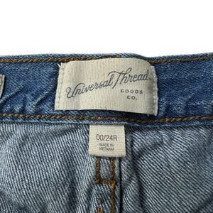 Universal Thread relaxed wide leg jeans, size 00/24R. 100% cotton, medium wash, straight wide leg.