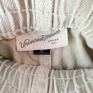 Universal Thread™ (Goods Co.) wide-leg pants in a soft light sage color, size XL. Easy pull-on style with an elastic waistband and functional drawstring. Relaxed, flowy wide-leg fit with front patch pockets and back patch pockets. Fabric tag shows Body: 100% cotton. Great for comfy casual outfits—easy to dress up with sandals or keep relaxed with sneakers. Washed but never worn.
