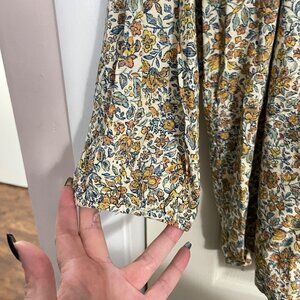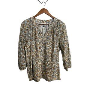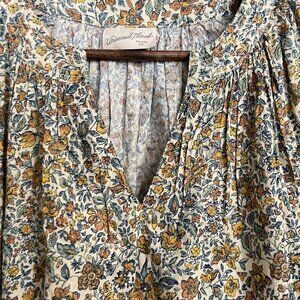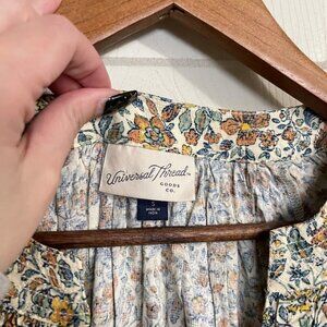 Universal Thread Women White Split Neck Floral Bohemian Cottagecore Blouse Small