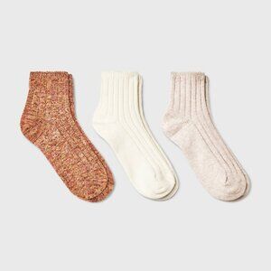 Universal Thread Women's 3 Pack Ribbed Ankle Socks Oatmeal Cream Rust 4-10