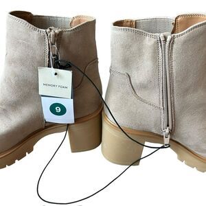 Universal Thread Women’s 9 Memory Foam Faux Suede Platform Booties Tan Chunky