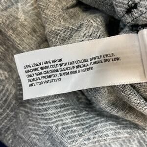 This button-up shirt features a stylish black and white floral pattern. The fabric blend of linen and rayon offers comfort and durability.