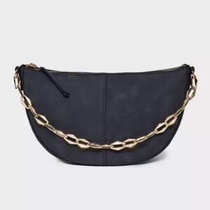 Universal Thread Women's Black Half Moon Shoulder Bag With Gold Chain
