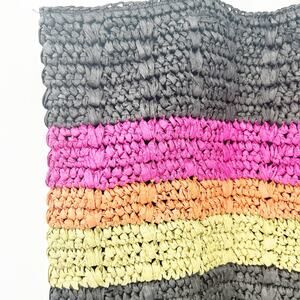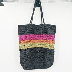 Universal Thread Womens Boho Summer Beach Striped Woven Straw Shoulder Tote Bag in Black Pink Yellow and Orange.