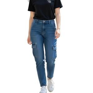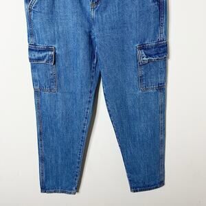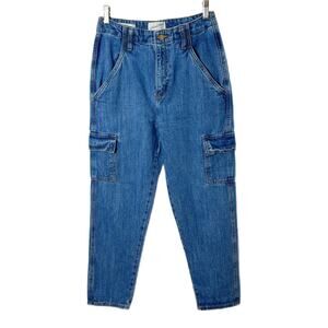 Universal Thread Women’s Boyfriend Cargo Jeans 0 Blue Med Wash Tapered High Rise