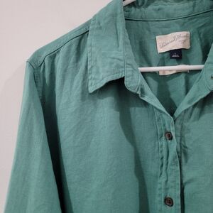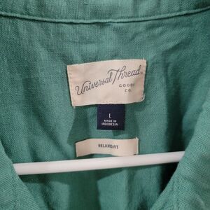 Universal Thread Womens Button Up Shirt Size Large Linen Blend Green Relaxed Fit