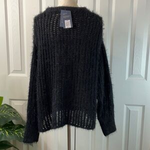 Universal Thread Women's Crewneck Openwork Pullover Sweater Black XXL