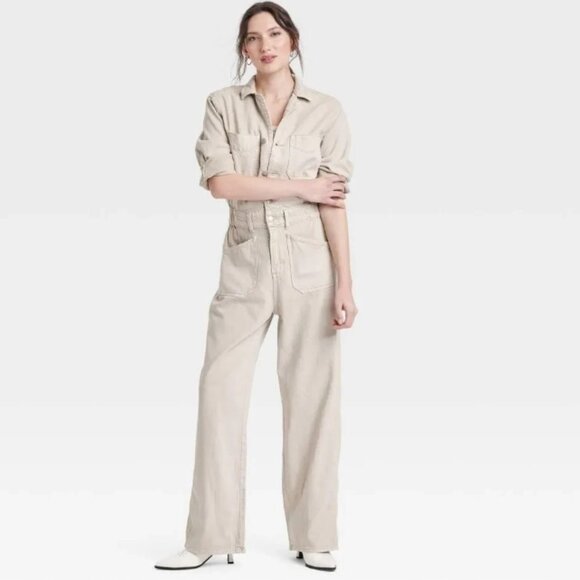 Universal Thread Women's Denim Baggy Jumpsuit Beige Size 6 NWT
