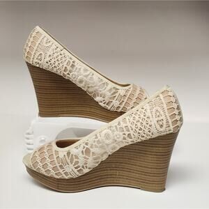 Universal Thread Women's Lace Fabric Peep Toe Wedge Platform Heel Shoes Cream 8W.