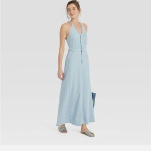 🆕Universal Thread Women's Halter Summer Denim Maxi Dress new
