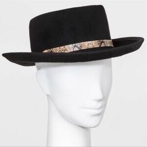 Universal Thread Black Felt Wool Boater Hat with Snake Print Band Adjustable NWT