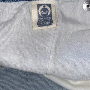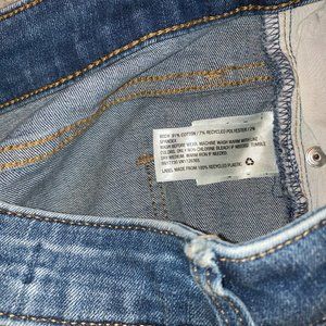 Excellent preowned condition, like new. Soft stretch construction keeps the fit comfortable. Raw edge hem, laid-back, easygoing vibe. Distressed denim.