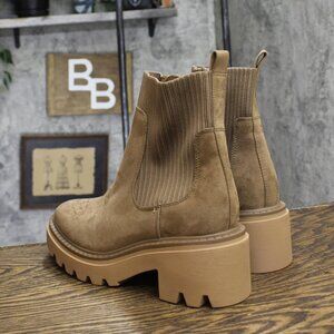 Universal Thread Womens Kyrie Chunky Heel Ankle Sock Boots Tan Brown 8.5M