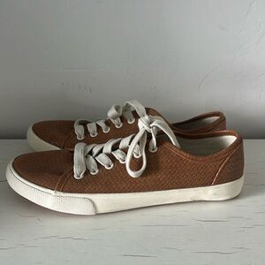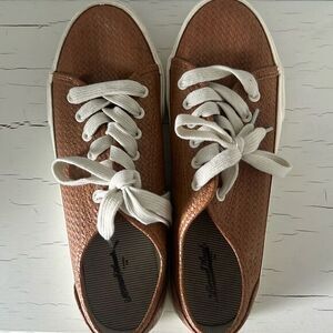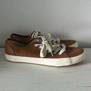 Universal Thread Women's Lace Up Sneakers Cognac Weave Faux Leather Size 10