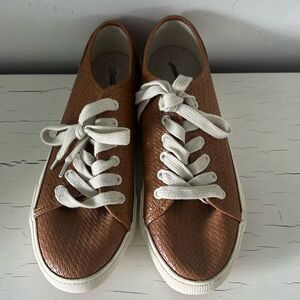 Universal Thread, lace-up sneakers, cognac brown shoes, woven faux leather, casual sneakers, women's size 10, Target shoes, boho casual, minimalist fashion, versatile everyday shoes, tennis
