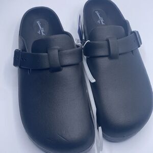 Spruce up your footwear collection with these Lexi Clog EVA Flats from Universal Thread™. These stylish clog flat features a D-toe front and an instep strap with an adjustable buckle accent to bring on-trend flair to your look. The contoured offers comfortable walking, while the easy slip-on design completes the look and is easy to pair with casual ensembles.