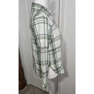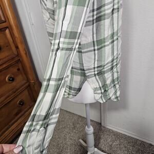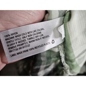 The Universal Thread Women's Long Sleeve Flannel Button-Down Shirt in Size XS is a versatile and stylish top perfect for various occasions such as travel, casual outings, or workwear. Made from soft 100% rayon fabric, this shirt features a collared neckline, button closure, and a relaxed fit. The green and white plaid pattern adds a classic touch, while the lightweight and easy-care material make it suitable for all seasons. With long sleeves and a casual sleeve type, this shirt is a timeless addition to any woman's wardrobe, offering comfort and style in one. Shirt is super soft!