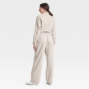 Embrace laid-back style with this Long-Sleeve Utility Baggy Denim Jumpsuit from Universal Thread. Made of cotton and lyocell, this long-sleeve jumpsuit features a collared neckline with button-down style. This straight-leg jumpsuit comes with a fly button and zipper for a snug, stay-put fit. Designed with barrel cuffs, this jumpsuit sports two front pockets, two side pockets and two back pockets.