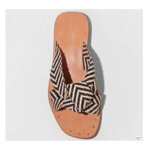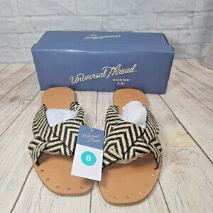 Universal Thread, Women's Louise Chevron Print Knotted Slide Sandals, Black, 7.5