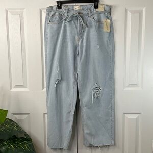 Universal Thread - Women's Mid-Rise Tie-Waist Drawstring Baggy Jeans 12 Short