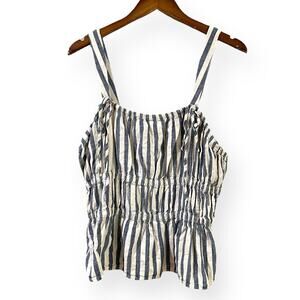 Universal Thread Women's Peplum Tank Top Navy Cream Stripe Sz XL Linen Blend
