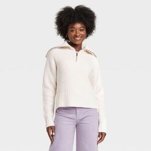 Universal Thread - Women's Quarter Zip Collared Pullover Sweater - Cream XS