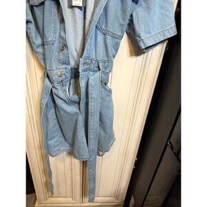 Universal Thread Women's Short Sleeve Button Front Collared Belted Denim Romper Blue Size 4 NWT