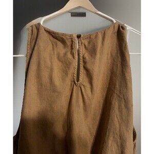 The Universal Thread Women's Sleeveless Jumpsuit in Tan, Size XL, is a stylish and versatile one-piece outfit perfect for casual occasions in the summer season. The jumpsuit features a flattering V-neckline, an open back, and strapless sleeves, offering a trendy yet comfortable look. Made from a linen blend material, this beige jumpsuit is easy to care for with machine washable instructions. With its solid pattern and minimalistic design, this jumpsuit embodies a timeless elegance that can be dressed up or down for any event.