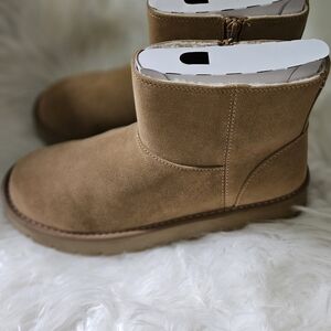 Chic and versatile tan booties. Soft suede finish. Ideal for casual wear.