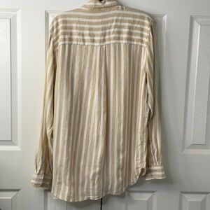 Universal Thread Womens Tan & White Striped Long Sleeve Button Down Size M