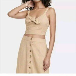 Universal Thread Women's Tie-Front Cropped Tank Top - Size XL Wheatfield Tan B
