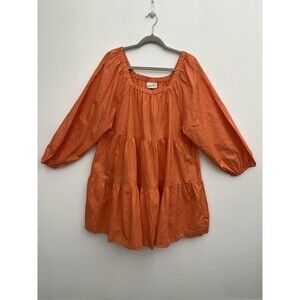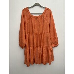 Universal Thread Women’s Tiered Mini Dress Orange Square Neck Size XL W/Pockets