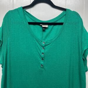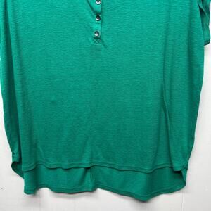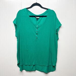 Universal Thread women's green top. Scoop henley neck. Short sleeves. High-low hem. In good used condition. No stains, tears or holes.