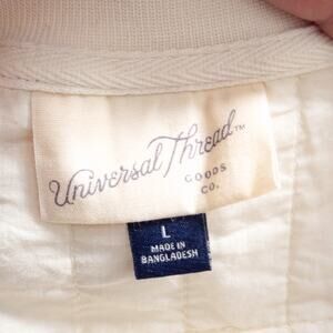 Universal Thread women’s quilted pullover in ivory with soft pastel patchwork patterning. Women’s size large. Made from a cotton blend with a textured quilted finish, this top brings the feel of handmade craftsmanship to a relaxed modern silhouette. The light geometric design adds charm without overwhelming, blending comfort and visual texture beautifully.
