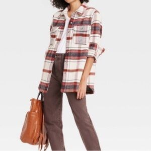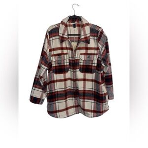 Universal Thread Women's Wool Blend Button-Down Shacket Blazer Red Plaid XXL
