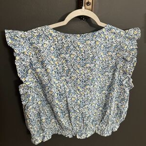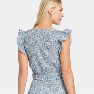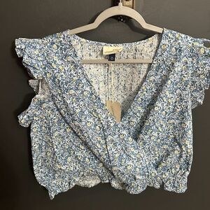 Universal Thread Women's Flutter Sleeve Crop Wrap Top Blue Floral NWT XXL